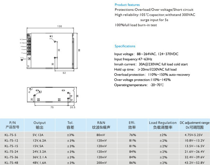 過載保護(hù):110%-150%自動(dòng)恢復(fù)